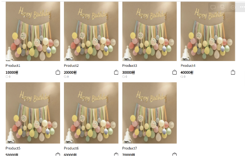또 api요청을 하여 db에 있는 모든 상품 데이터를 받아와 베스트 상품에 적용 시켰습니다. 상품의 이름, 가격, 리뷰, 이미지를 가져와서 보여주도록 설정하였습니다. 임시 데이터이기 때문에 이미지는 모두 같은 것으로 표기가 되고 있습니다.